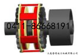 限矩型液力偶合器在液力偶合器被動力機(電機)帶動運轉時,存在于液力偶合器腔體內的工作液體,受泵輪的攪動,既隨 液力偶合器相當于離心泵與渦輪機的組合。當動力機通過液力偶合輸入軸驅動泵輪旋轉時,充填在工作腔中的工作液體在離心力的作用下,沿泵輪葉片流道由泵輪入口向外緣流動,同時,液體的動量矩產(chǎn)生增量,即偶合器的泵輪將機械能轉化成了液體動能。當攜帶液體動能的工作液體由泵輪出口沖向對面的渦輪時,工作液體便沿渦輪葉片流道做向心流動,同時釋放液體動能,轉化成機械能,驅動渦輪旋轉并帶動工作機做功。就這樣工作液體在偶合器腔內周而復始地做旋轉流運動,輸出與輸入在沒有任何直接機械連接的情況下,僅靠液體動能,便柔性地聯(lián)接在一起了。
